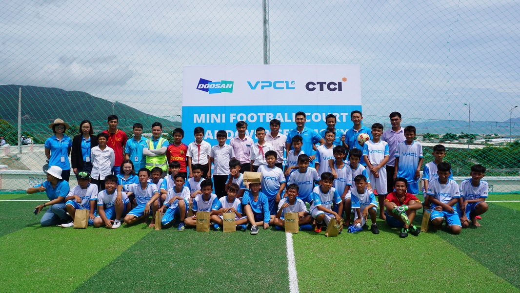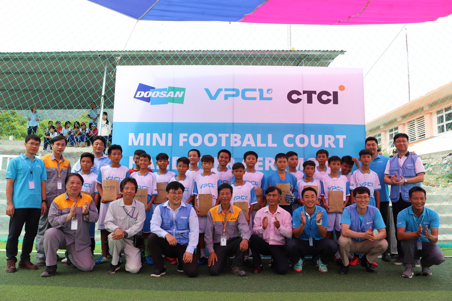 Since most VPCL’s members are sport fanatics, it is a mutual understanding among us that having a proper place to play sport is the promotion of a healthier lifestyle among the youth. This undoubtedly helps them fight the odds that would often stack against younger folks in a typical remote area in transition like that of Ninh Phuoc commune (temptation from drugs and alcohol addiction, criminality and other social ills). With this spirit, after discussions with relevant stakeholders, VPCL decided to support Ninh Phuoc People’s Committee and its sport center in constructing a mini football court and to involve other EPC contractors being Doosan and CTCI in this program.