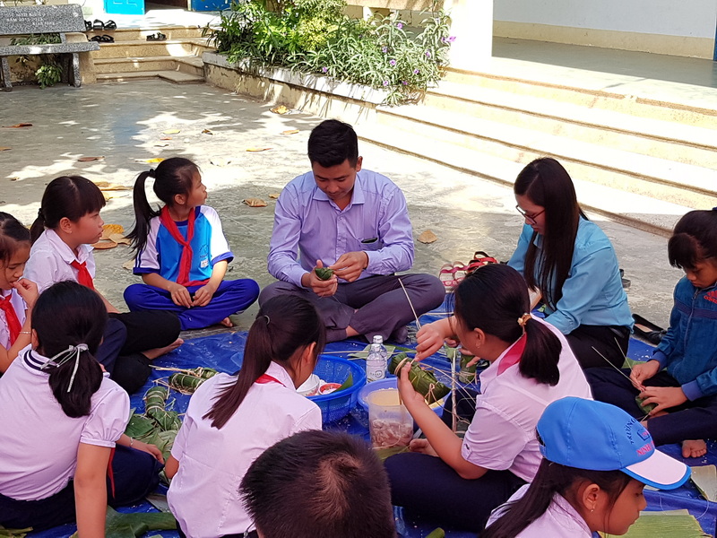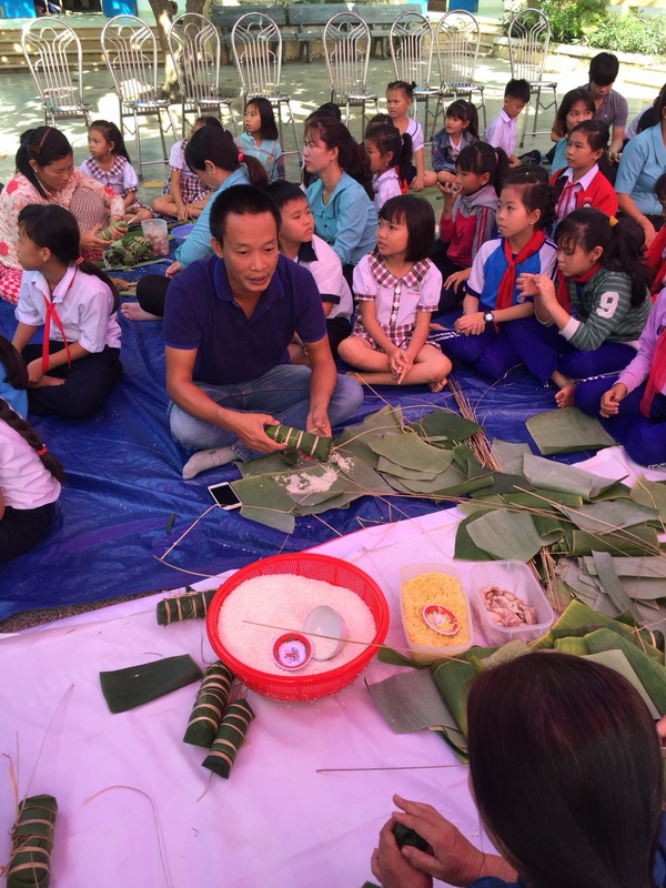 Đối với đa số nhân viên VPCL và các em học sinh, đây là lần đầu tiên mọi người được làm quen với việc gói bánh Tét nên rất lúng túng và vụng về. Chỉ đến khi các bà, các dì, các cô trong làng Ninh Tịnh bỏ chút thời gian đến trường để hướng dẫn cách gói bánh thì mọi người mới tự tin hơn và gói được bánh Tét tròn đầy hơn.