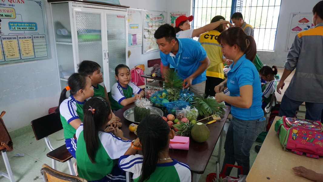 Các thành viên của VPCL cũng tham gia hết mình cùng các em từ lớp 1 đến lớp 5 trong cuộc thi xếp mâm ngũ quả và làm lồng đèn. Đại diện của các nhà thầu nhận lời làm giám khảo và hỗ trợ công tác chấm điểm, quyết định người thắng cuộc trong cuộc thi này.