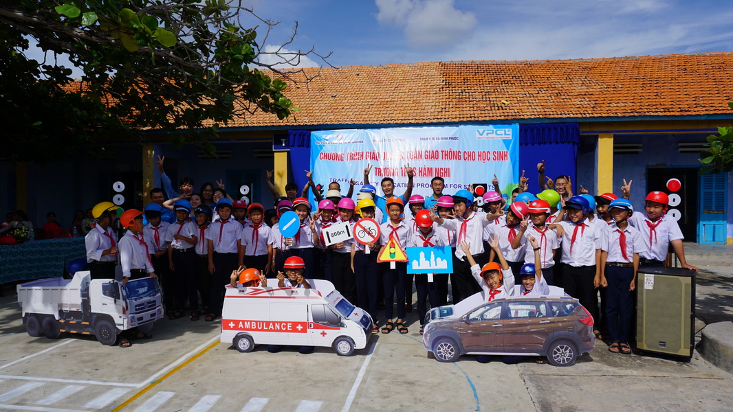 Khi các em học sinh tựu trường trở lại vào đầu năm học 2020-2021, một trong những lo ngại lớn nhất của VPCL là vấn đề an toàn của các em học sinh khi tham gia giao thông trong khu vực quanh công trường. Rất nhiều học sinh trường cấp 2 Hàm Nghi đi học bằng xe đạp điện qua đường tỉnh lộ bọc ngoài công trường nhà máy. Giao thông trên đoạn đường này ngày càng tấp nập hơn để phục vụ hoạt động xây dựng trong công trường. Để nâng cao nhận thức của các em học sinh về việc giữ an toàn cho bản thân mình và người khác trong khi tham gia giao thông, VPCL kết hợp với lực lượng Cảnh sát Giao thông thị xã Ninh Hòa tổ chức chương trình giáo dục về an toàn giao thông tại trường cấp 2 Hàm Nghi. 30 giáo viên và 425 học sinh của trường đã tham gia vào rất nhiều hoạt động của chương trình này.