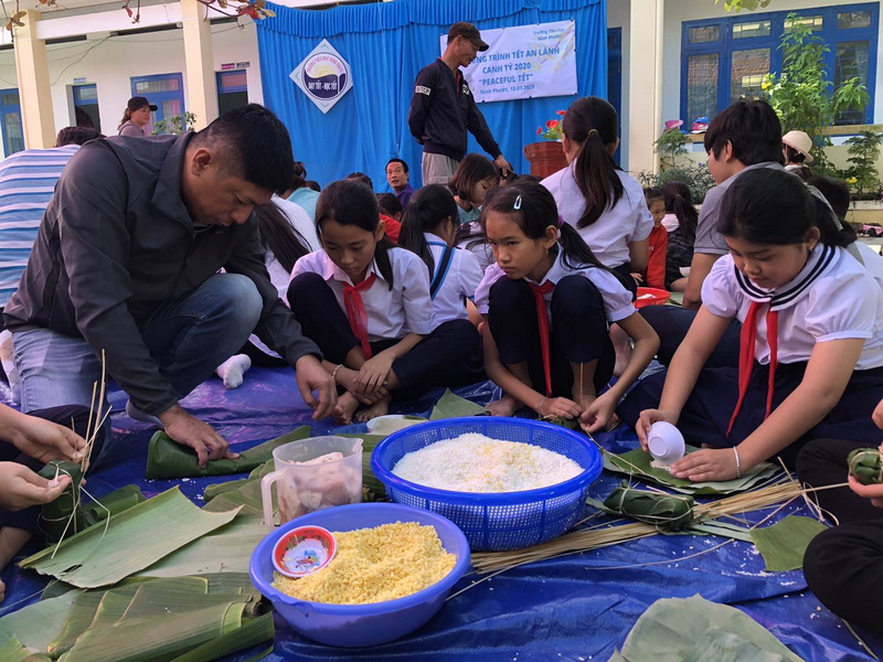 Năm Canh Tý bắt đầu với chương trình Tết An Lành. Các em học sinh được học cách làm bánh Tét – loại bánh truyền thống trong dịp Tết cổ truyền tại vùng đất Nam Trung Bộ này. Ngày 13.01.2020, tại trường tiểu học Ninh Phước, các thành viên của VPCL cùng với 100 em học sinh và 20 thầy cô giáo cùng nhau học gói bánh Tét.