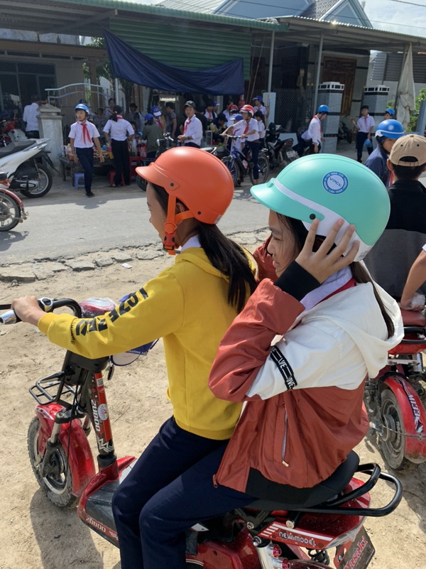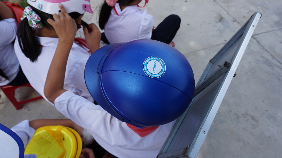 Điểm nhấn của chương trình có lẽ là phần phát mũ bảo hiểm đầy màu sắc để động viên cổ vũ cho các em học sinh đội mũ khi tham gia giao thông.