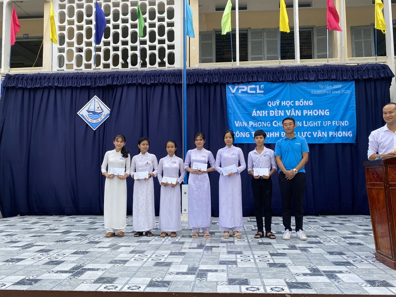 Cùng với năm học mới, VPCL đồng thời khởi động chương trình học bổng khuyến học dành cho các em vượt khó học giỏi. Tại xã Ninh Phước, trung học cơ sở là cấp học cao nhất có cơ sở giáo dục tại địa phương. Sau khi tốt nghiệp lớp 9, các em thường bỏ học nếu như gia đình không có điều kiện gửi các em lên phường Ninh Diêm hoặc thị xã Ninh Hòa để tiếp tục học cấp 3. Cân nhắc nhu cầu tại của địa phương, VPCL đã thành lập Quỹ học bổng Ánh đèn Vân Phong với 2 hợp phần: