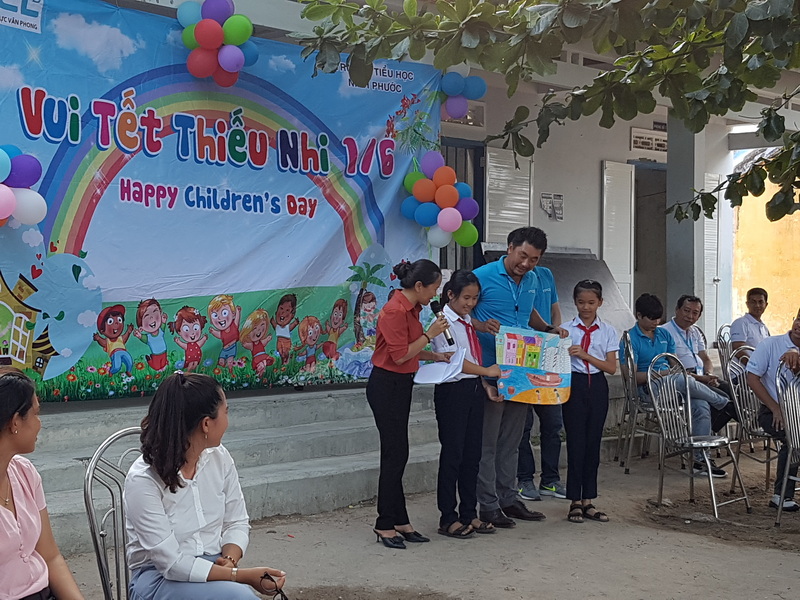 Vào ngày Quốc tế Thiếu nhi năm nay, 262 học sinh tiểu học Ninh Phước tại điểm trường Mỹ Giang cùng chung vui với nhân viên VPCL trong buổi sinh hoạt tìm hiểu về quyền trẻ em, tham gia các trò chơi và trả lời câu hỏi có thưởng. Các tấm áp phích chứa đựng thông tin về quyền trẻ em và những tại nạn, thương tích có thể xảy ra ở nhà được treo lên xung quanh trường học trước buổi sinh hoạt và giữ lại sau đó để các em học sinh tìm hiểu trong giờ ra chơi. Trong dịp này, hơn 600 phần quà cũng được trao tặng cho tất cả các em học sinh tiểu học của xã Ninh Phước.